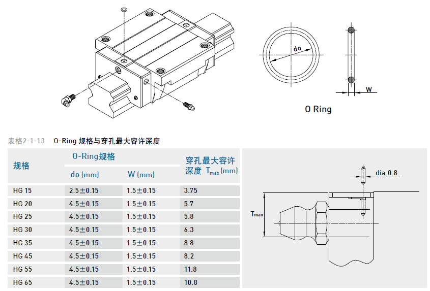 依客戶需要在滑塊前端或后端裝上油嘴以供手動打油,HG系列特別在端蓋側邊預留側油孔位置安裝油嘴(一般為直油嘴),提供側向打油,側向打油的位置建議在非側基準邊,但若有特殊需要亦可放在側基準邊??蛻羧缬猩鲜鰝认虼蛴托枨笳埮c我們聯絡。使用接管方式自動供潤滑油脂之直線導軌,則可依連接管型式選用安裝油管接頭。