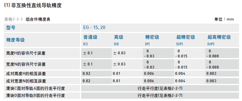 (2) 互換性直線導軌精度
