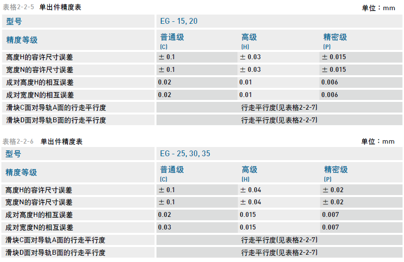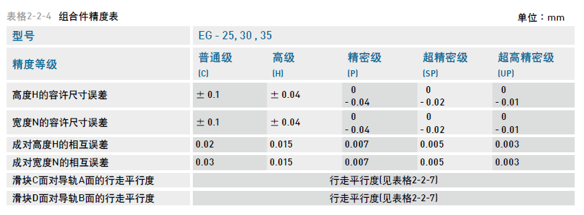 EG系列直線導軌的精度,分為普通、高、精密、超精密、超高精密級共五級,客戶可依設備精度
